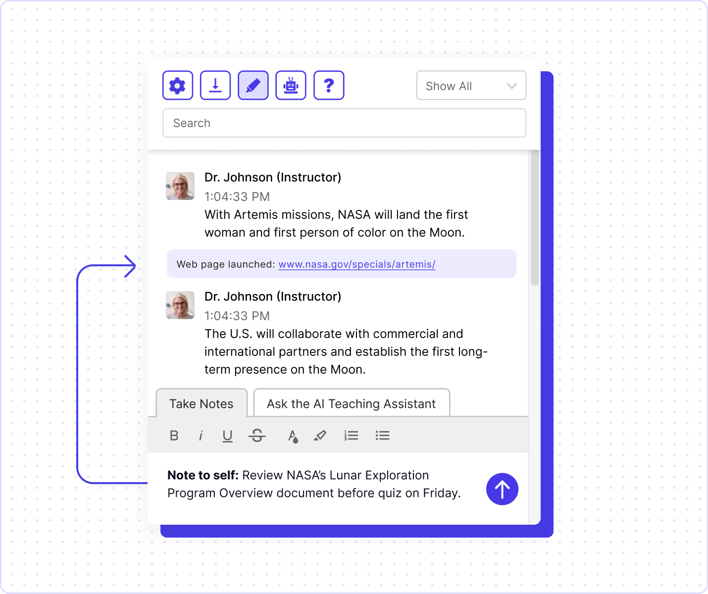 Ensure no learner misses vital information with easily accessible real-time transcriptions, fostering an inclusive environment for all participants. Enhance comprehension with interactive note-taking and editing features, empowering focused learning and streamlined review sessions.