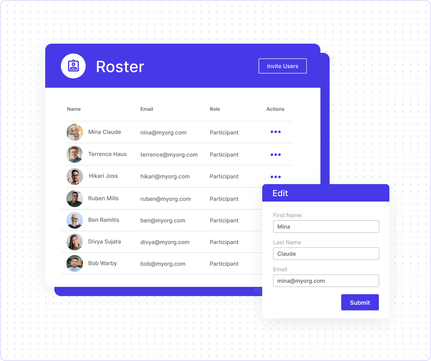 - With flexible editing capabilities, modify individual details like names, emails, and roles directly in the roster