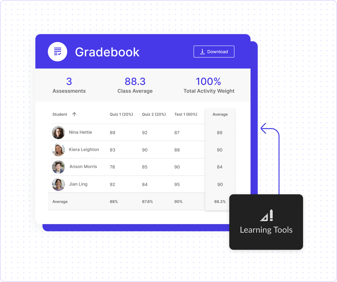 Maximize grading efficiency and insight with the Class gradebook, effortlessly compiling results from multiple Class sessions. Streamline organization and informed decision-making for enhanced teaching and learning outcomes.
