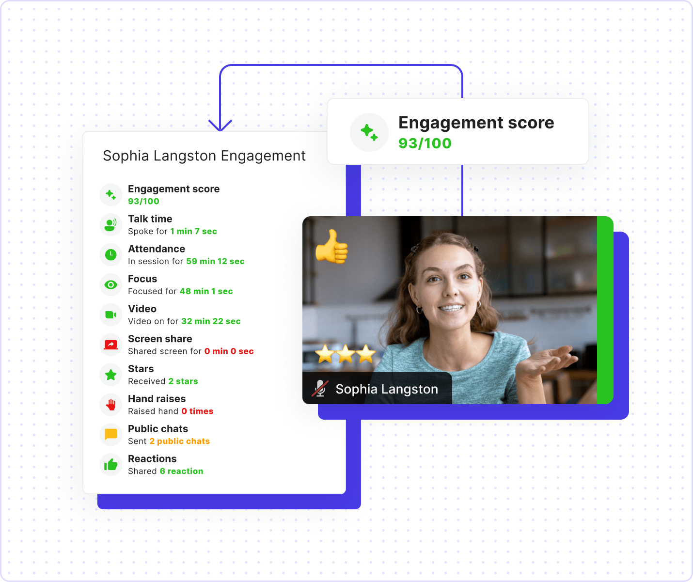 - Track participation with engagement scores that update every 30 seconds