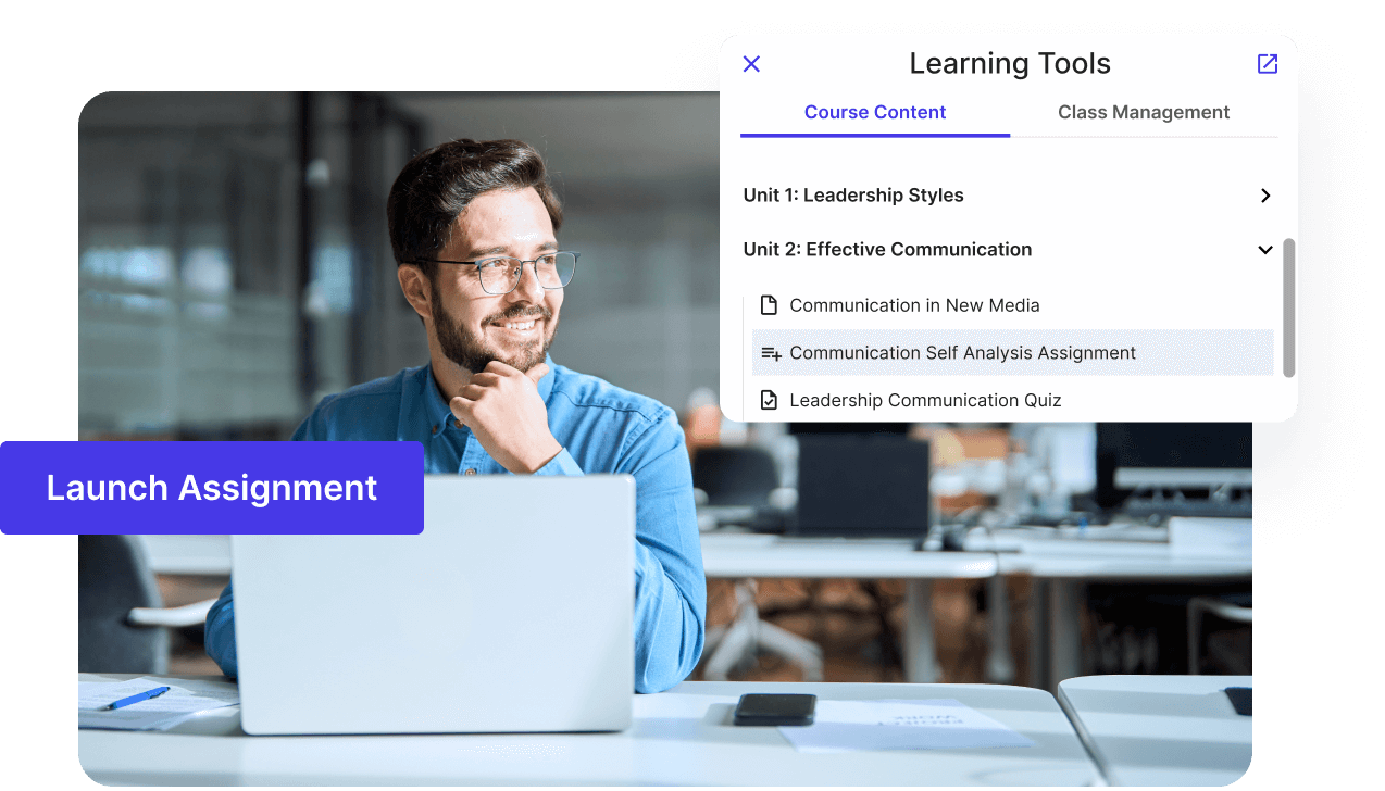 Centralize learner performance data within Canvas by Instructure. As activities take place in Class, completion and grades seamlessly transfer to Canvas by Instructure, empowering instructors to effortlessly monitor student progress.