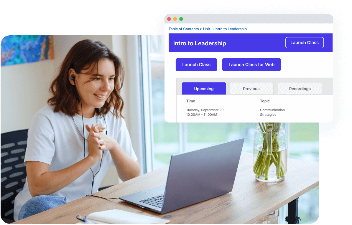 Through a custom integration with Canvas, Class promotes active engagement for online learners, driving improved completion rates and leading to better learning outcomes.